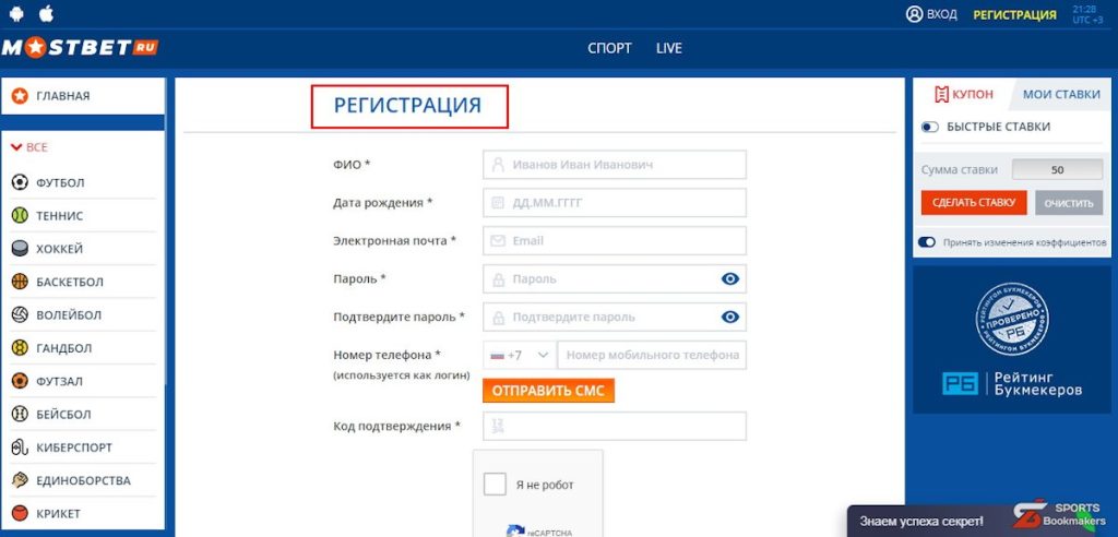 Для регистрации клиенту требуется сначала загрузить официальный сайт букмекерской конторы мостбет. После этого требуется нажать на кнопку «регистрация», находящуюся в правом верхнем углу экрана.